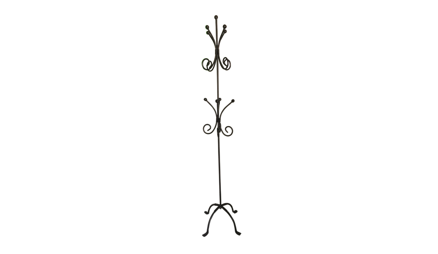 Descripción del producto: Medidas: Altura 160 cm x 25 cm. Material: Redondo de 1/2 pulgada con patas forjadas. Color: Negro/chocolate. Acabado: Pintura horneada. Código: AUX016